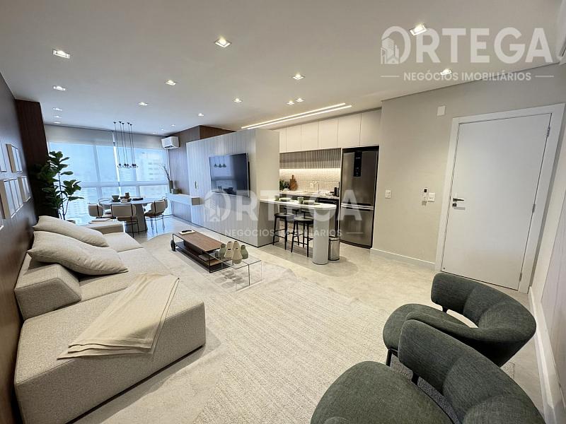 O apartamento contempla: 103m² de área privativa, 03 dormitórios,sendo 01 suíte, Sala e copa com varanda gourmet estendida, lavabo, área de serviços, banheiro social, e espaço para mesa escritório.