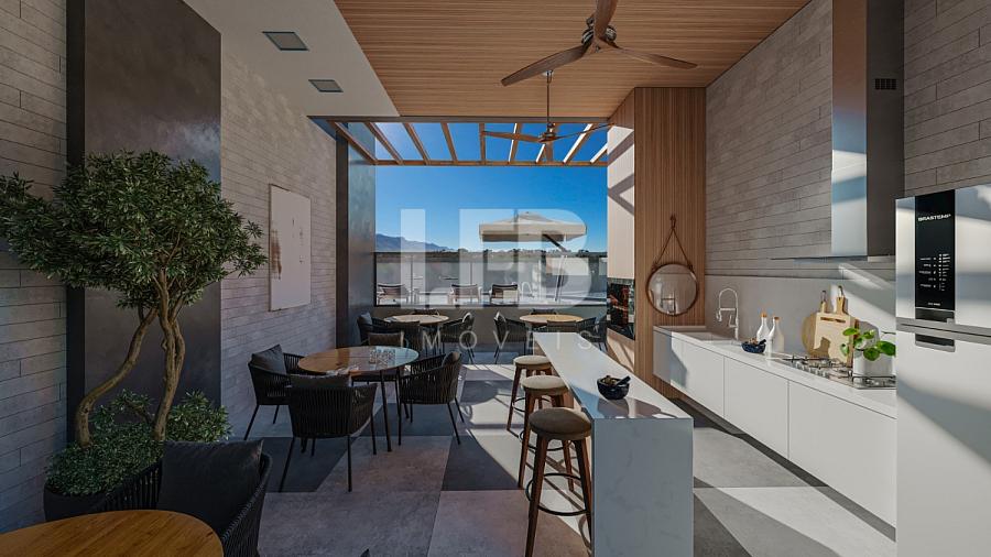 •Sacada com churrasqueira à carvão, ampliando o espaço social;