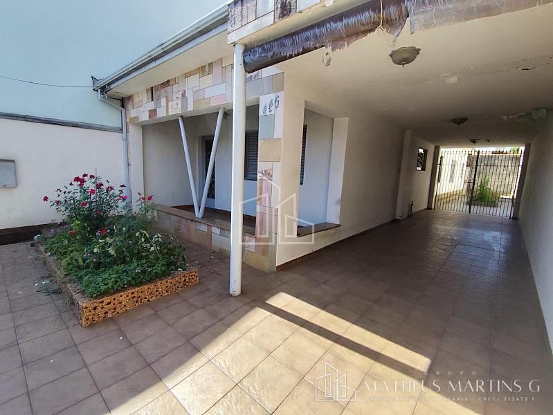 - Corredor lateral, quintal e área verde com árvores frutíferas.