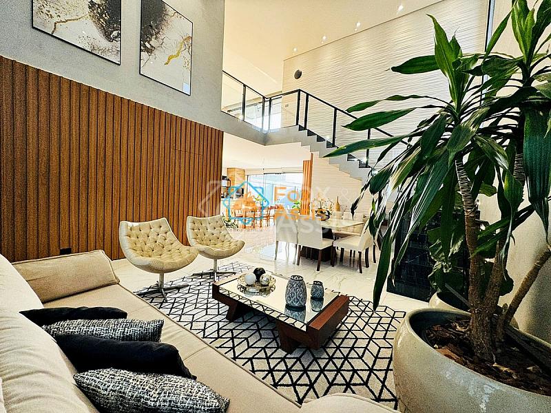Incrível imóvel em estilo contemporâneo com fino acabamento, possui sala 02 ambientes com pé direito alto integrada a uma ampa cozinha gourmet completa em armários com cooktop, forno, microondas e churrasqueira.