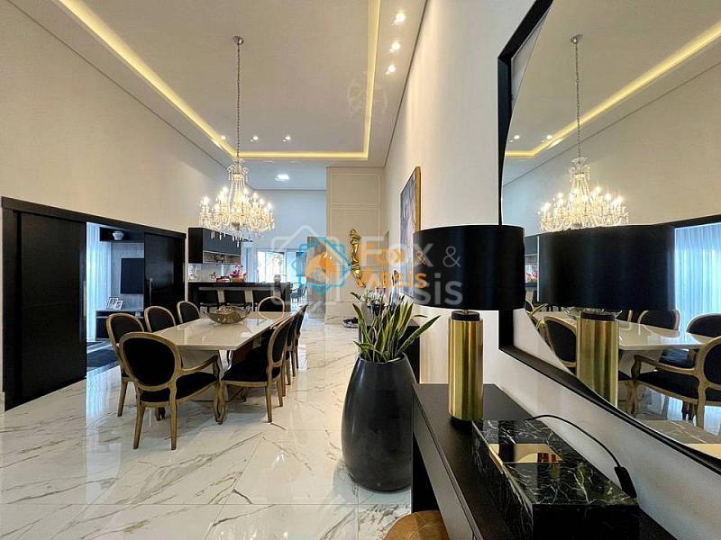Este incrível imóvel no estilo contemporâneo, completa em armários e fino acabamento, possui 03 suítes sendo a principal com closet, sala com 02 ambientes integrados com pé direito duplo, lavabo, sala de home climatizada, cozinha e área gourmet fechada com churrasqueira e uma ampla área externa com piscina e pergolado.